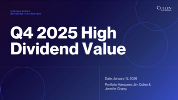 The High Dividend Value Equity strategy, launched in 1994, invests in large capitalization equities with low Price/Earnings and Price/Book ratios, along with High Dividend Yields; this disciplines value approach aims to deliver strong long-term capital appreciation and above-average income with significantly less volatility. The strategy's competitive, risk-adjusted returns over full market cycles are driven by strong upmarket capture and consistent down-market protection.